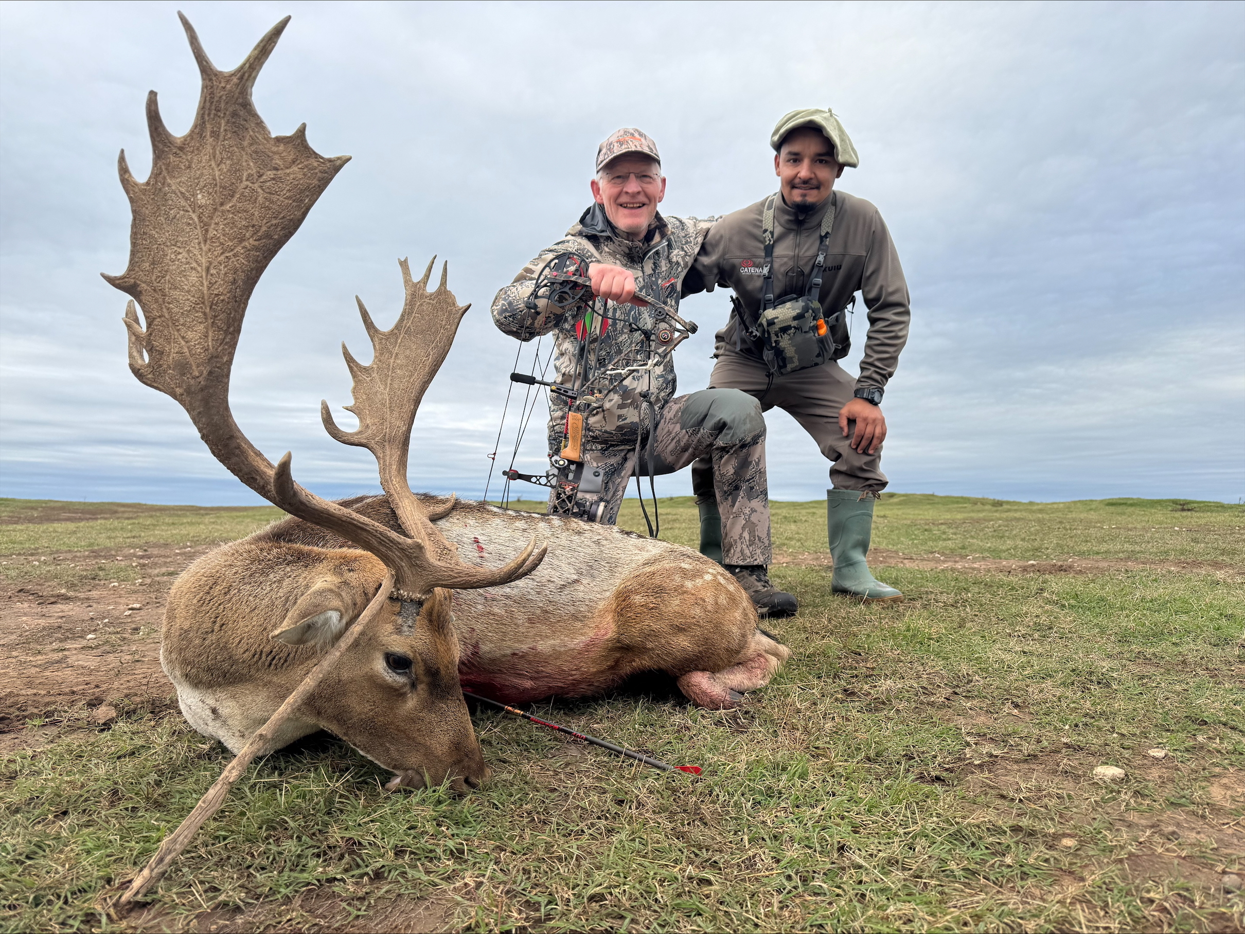 Author Rew Goodenow (left) and guide Silvio Kuhn just minutes after Goodenow killed this fine Fallow buck with his bow.