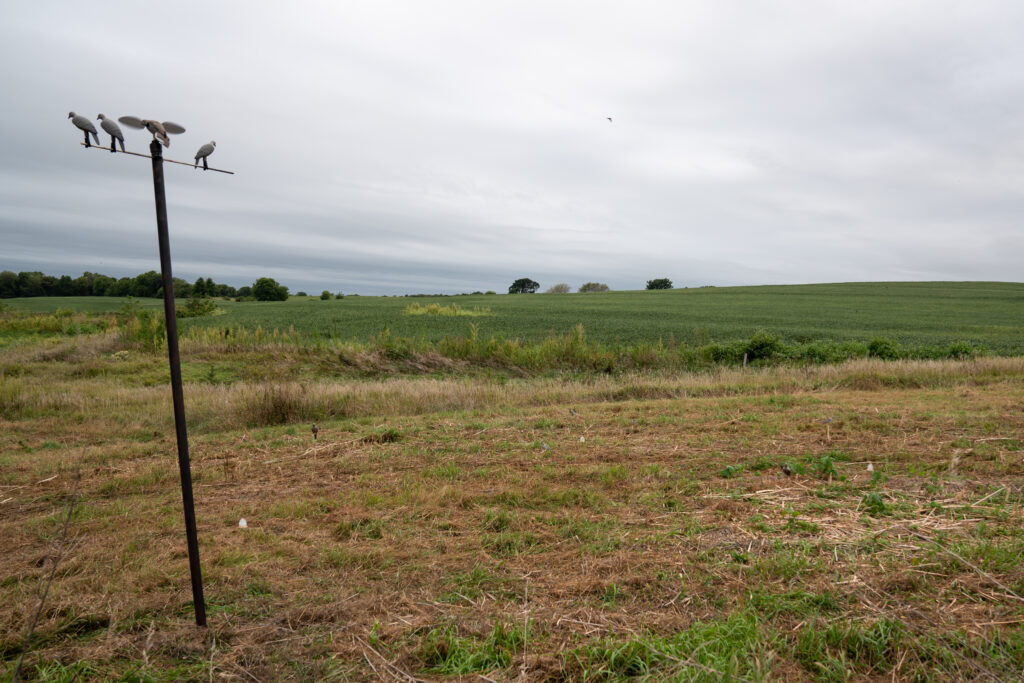 When you find the spot you want to set up (ideally where it can be seen from a long distance), pound your fencepost or stake in the ground and slide the end of the pipe over the top. Doves will often pass close to the tree, so set it up 20-30 yards in front of you for the best shot opportunities.