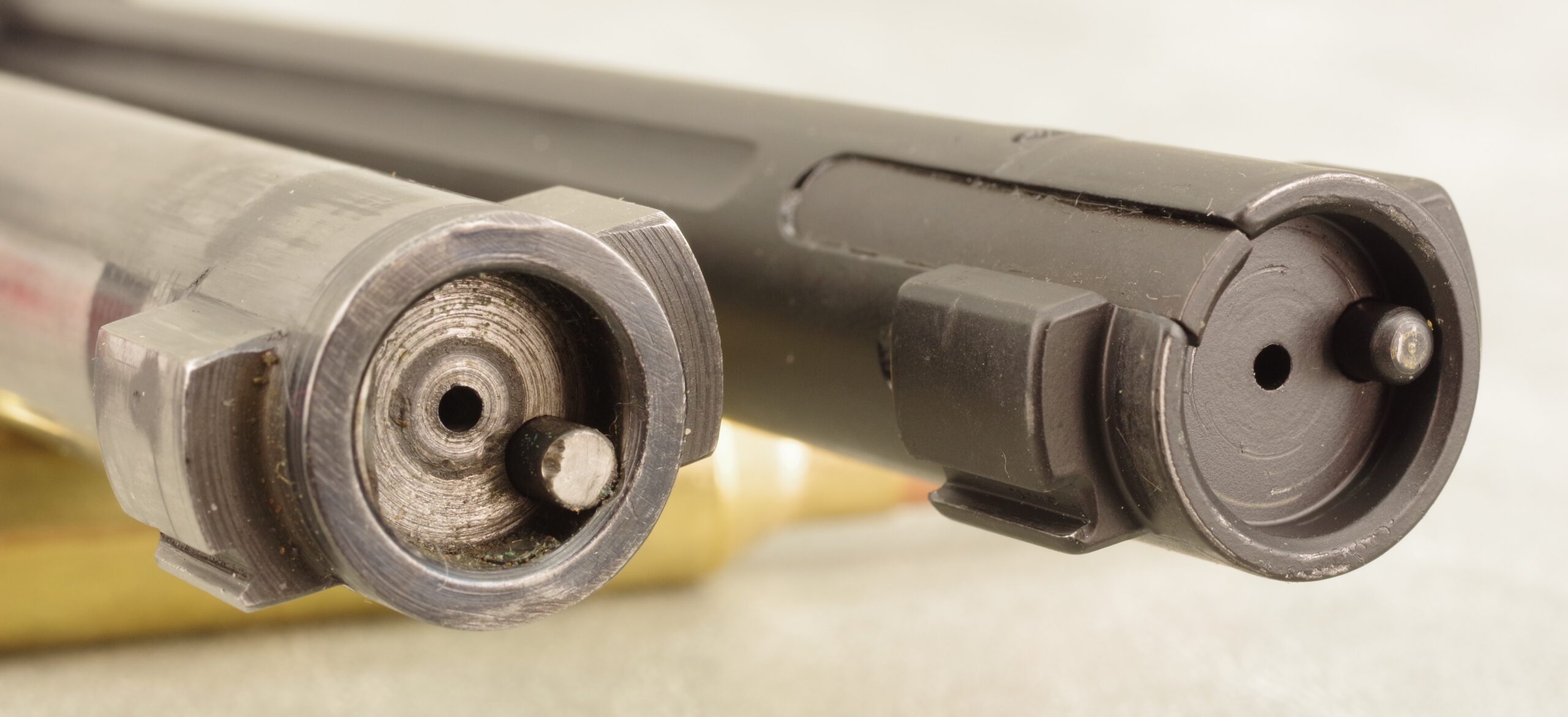With the exception of the M-16-type extractor, the 307 bolt, at right, is identical to the 700 bolt, right down to the anti-bind lip at the base of the right-side locking lug.