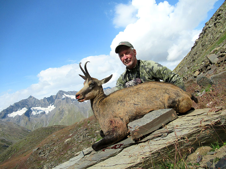 It took us half an hour of cautious climbing to work our way down the steep ridge and over to the chamois, a female. Of the six chamois I have killed on previous hunts, this was the first female and though perfectly legal, I was somewhat disappointed. I was later informed by the local forester I had killed the perfect chamois as she was 20-25 years old, barren and nearly blind. So, by fate and fortune, I had chosen an ancient chamois to harvest.