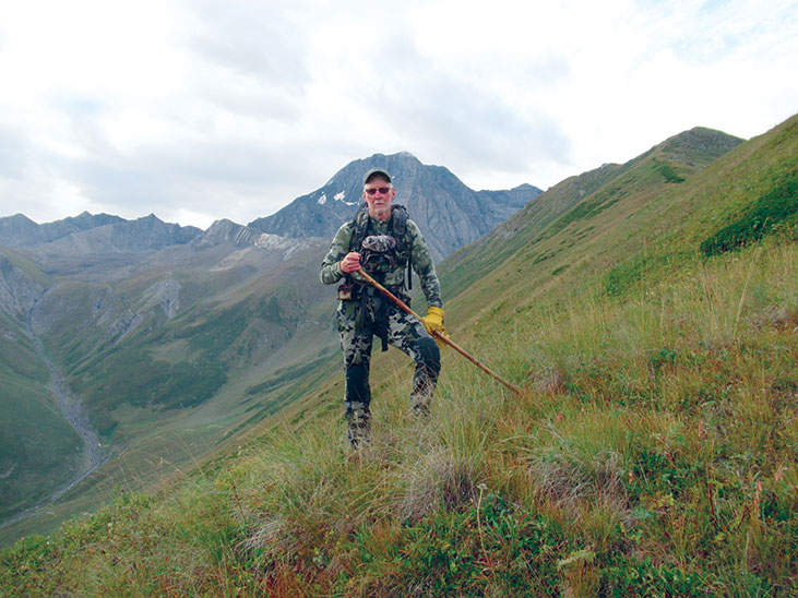 At dawn and 7,400 feet in elevation, we started our stalk, angling up the first bold, grassy swell of the shoulder, the tangled sod slick with dew. After an hour of demanding, greasy climbing we gained the crest of the backbone above the valley. The radio squelched again and Petro indicated the chamois continued to feed above us. The wind was perfect, a light breeze moving right to left from the south. We continued to climb; rhythmically, unwaveringly and endlessly it seemed at times.