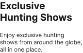 We’re not just a streaming channel. We’re also your source for hunting news, the latest hunting gear, information about local and international outfitters, deep discounts on hunting trips, and much more.