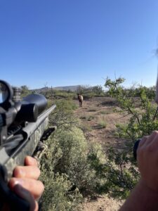 The five of us ran back like chickens with their heads cut off, and I got set up on the sticks behind some mesquite.