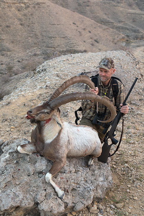 I took a 12-year-old buck after a fantastically exciting hunting day that passed and ended exactly as I had hoped. I tried both the driven hunt and the stalking and had a good long hunting day under the sun of the semi-desert, before I could secure the trophy I had dreamed of taking for many years. The ibex became my capra species number 30.