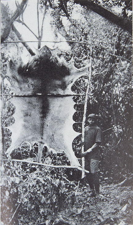 We spent the afternoon caring for the trophy, paring it down, doping it with alum water and finally stretching it in a huge frame which was hoisted into a tree. One of the Swahili porters was bragging that he liked any kind of meat, lion included. But I knew him to be a Mohammedan.–Selected and Edited by Ellen Enzler Herring of Trophy Room Books