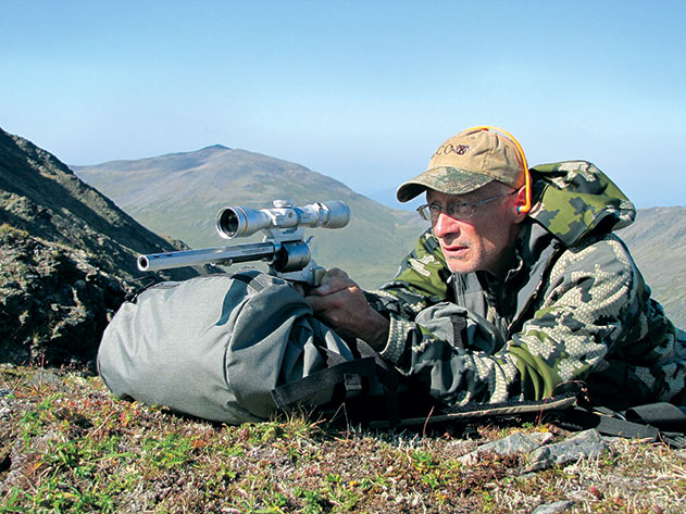 As I eased the backpack in position, Paul Chervanek of Kodiak Outdoor Adventures was peering through the rangefinder. The goats kept feeding leisurely in our direction. Carefully, I placed the revolver on the pack. Paul whispered the distance of several locations where the goats were likely to feed. There were at least three billies in the group.